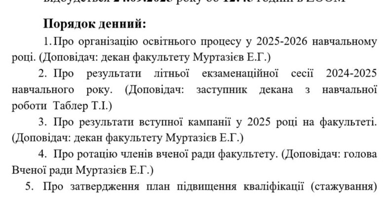 Оголошення: Засідання вченої ради в вересні 2025 року By Egor Published 22 Вересня, 2025 Новини факультету