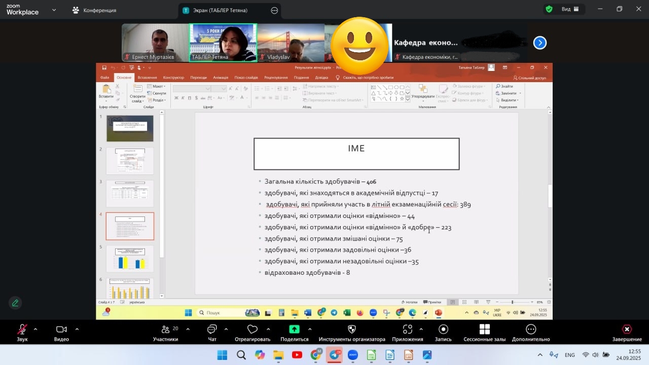 - Про результати літньої екзаменаційної сесії 2024-2025 навчального року. Доповідала заступник декана з навчальної роботи Тетяна ТАБЛЕР