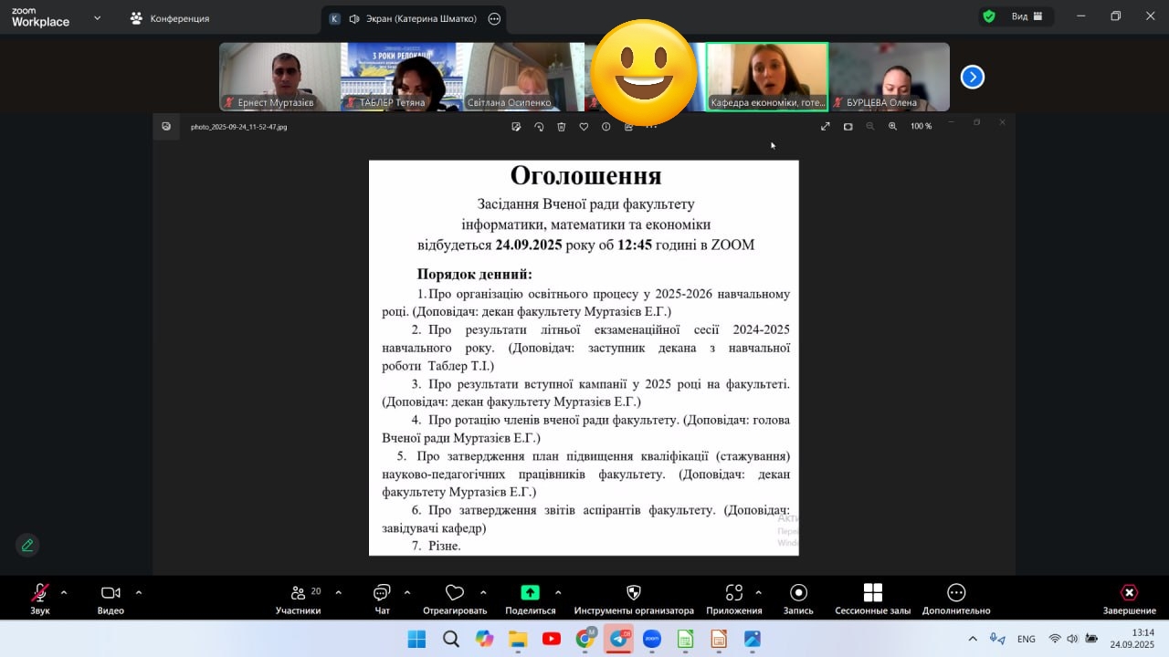 - Про організацію освітнього процесу у 2025-2026 навчальному році. Доповідав голова Вченої ради факультету ІМЕ Ернест МУРТАЗІЄВ