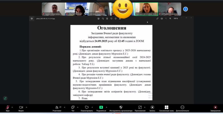 24 вересня 2025 року на факультеті інформатики, математики та економіки відбулося засідання Вченої ради. На порядку денному були розглянуті наступні питання: