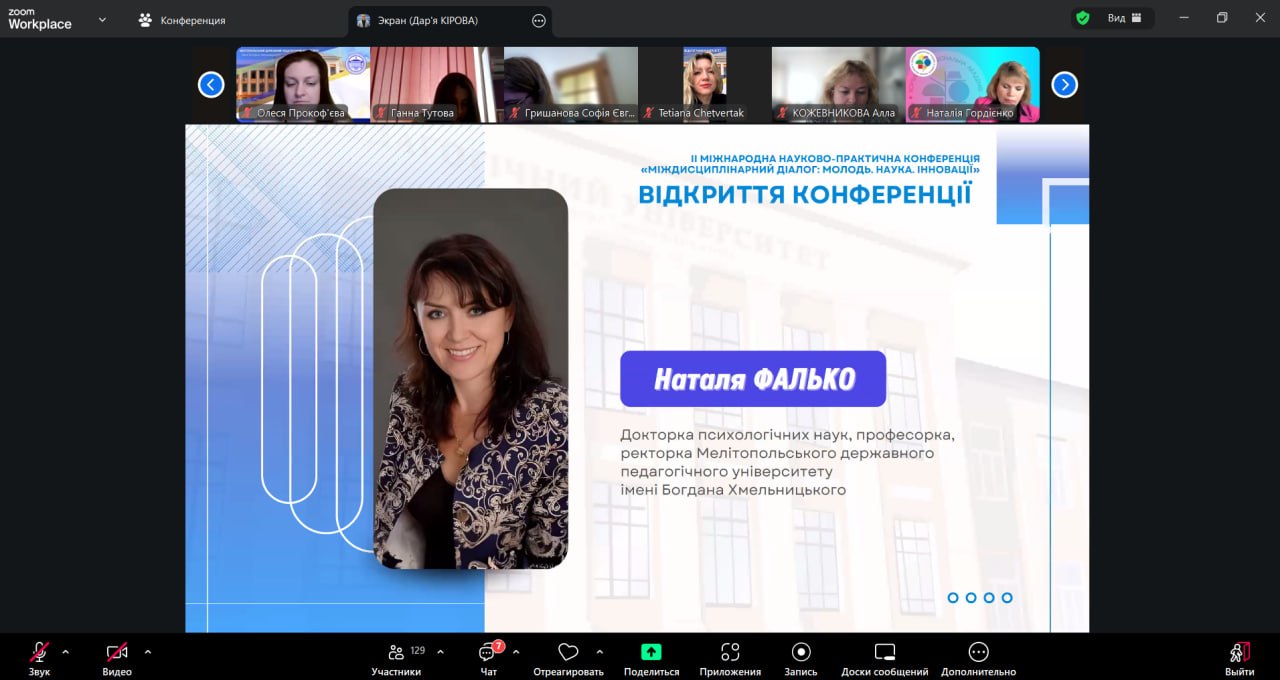 17 квітня 2026 року відбулася ІІ Міжнародна науково-практична конференція «Міждисциплінарний діалог: Молодь. Наука. Інновації». У межах заходу відбулося урочисте відкриття, а також було організовано роботу пленарного та секційних засідань. Активну участь у конференції взяли викладачі кафедри управління та адміністрування, а також здобувачі вищої освіти спеціальності «Менеджмент» МДПУ імені Богдана Хмельницького.