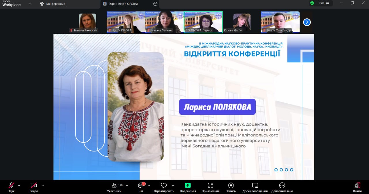 З вітальним словом до учасників конференції звернулася завідувачка кафедри управління та адміністрування МДПУ імені Б. Хмельницького Світлана Осипенко, яка наголосила на важливості консолідації наукової спільноти, органів влади, бізнесу та громадянського суспільства задля пошуку ефективних рішень у сфері соціально-економічного розвитку регіонів і держави.