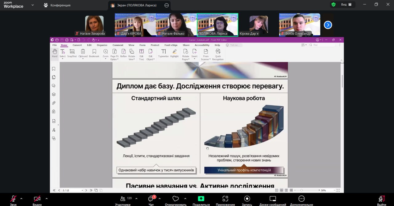 Також до дискусії приєднались завідувачка кафедри управління та адміністрування, доцент Світлана ОСИПЕНКО та доцент кафедри управління та адміністрування Наталя ЗАХАРОВА, які наголосили, що особливу цінність для вітчизняних ЗВО в умовах сьогодення мають академічні обміни, викладацькі візити та участь у міжнародних проєктах, адже створюють живі мости між університетами, сприяють взаємному збагаченню досвідом і формують середовище довіри та професійної солідарності.