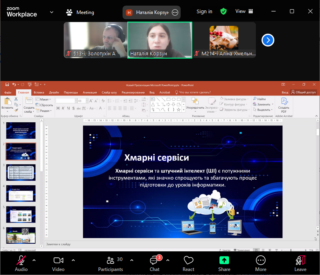 Лекція на тему «Хмарні сервіси та штучний інтелект при підготовці до уроків інформатики» була проведена для майбутніх вчителів інформатики – здобувачів вищої освіти освітньої програми «Середня освіта. Інформатика» першого (бакалаврського) та другого (магістерського) рівнів. До лекції також доєдналися майбутні педагоги професійного навчання – здобувачі вищої освіти спеціальності «Професійна освіта (Цифрові технології) – та всі охочі.
