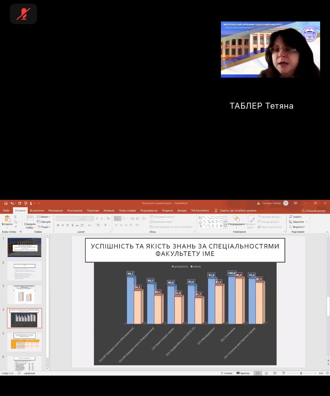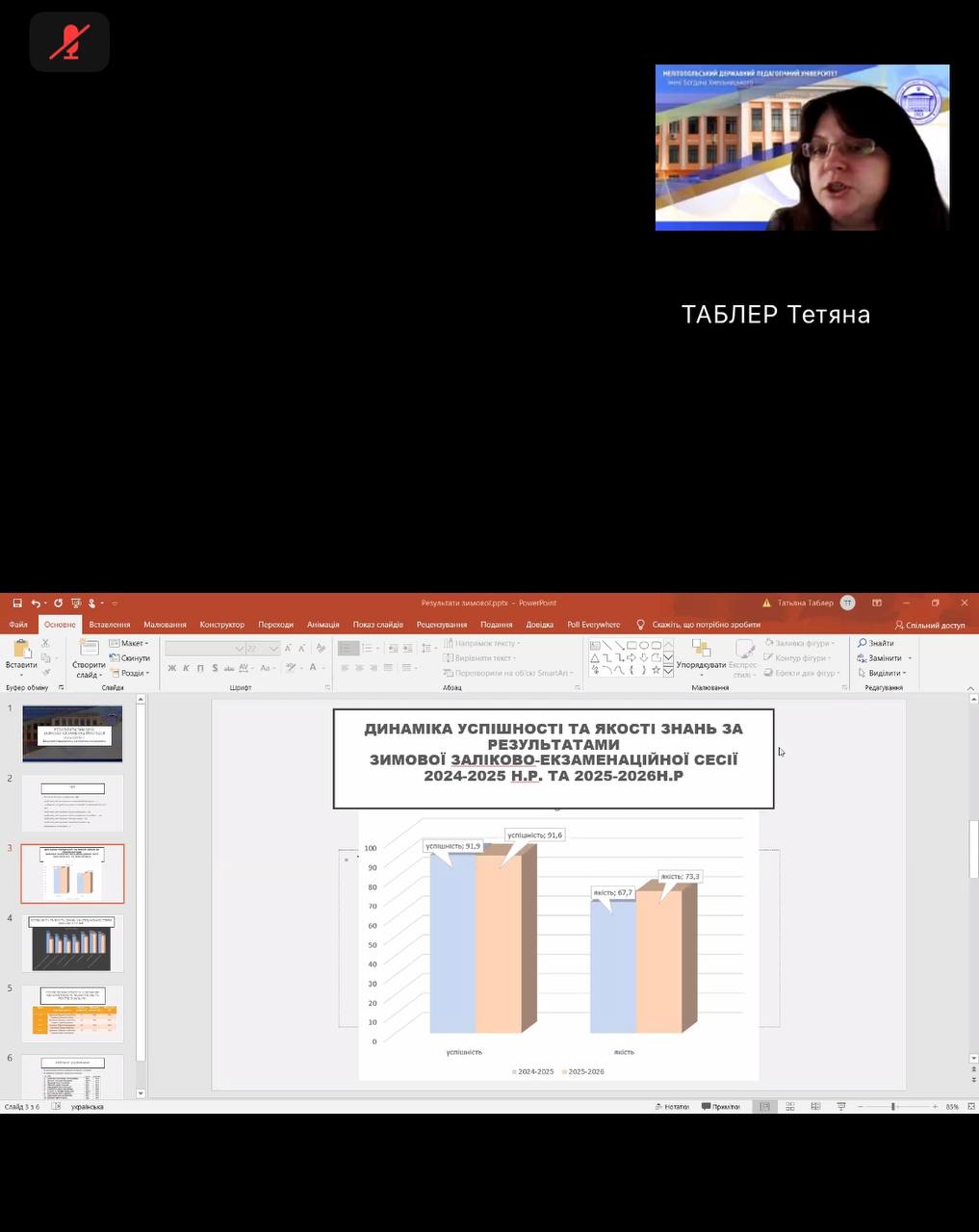 1. Про результати зимової заліково-екзаменаційної сесії у 2025-2026 н. р. Доповідала заступник декана з навчальної роботи Тетяна ТАБЛЕР.