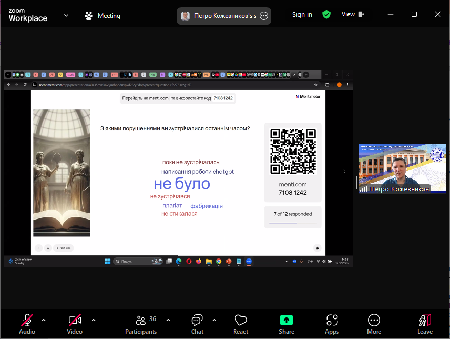 Наприкінці зустрічі було проведено інтерактив з використанням сервісу Mentimeter та обговорено надані учасниками відповіді.