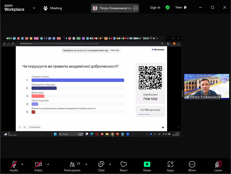 12 лютого 2026 р. на факультеті інформатики, математики та економіки було проведено просвітницький семінар для здобувачів вищої освіти «Головні аспекти академічної доброчесності».