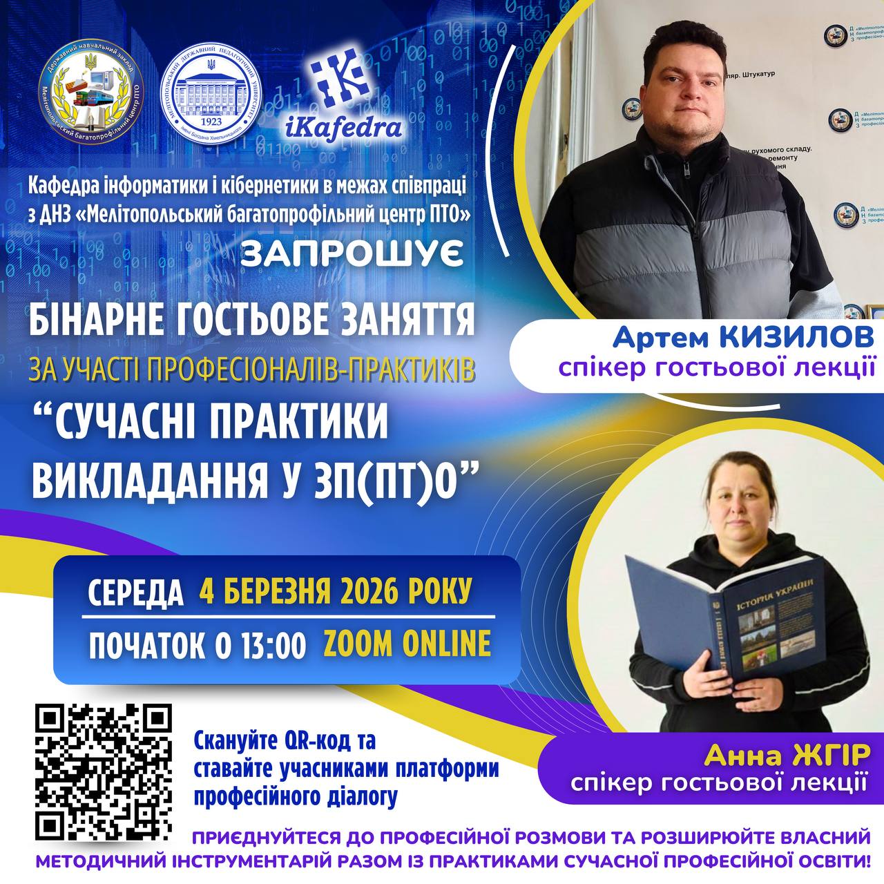 💻 БІНАРНЕ ГОСТЬОВЕ ЗАНЯТТЯ «СУЧАСНІ ПРАКТИКИ ВИКЛАДАННЯ У ЗП(ПТ)О»: ІНТЕГРАЦІЯ ДОСВІДУ ТА ПРОФЕСІЙНИХ ПІДХОДІВ