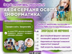 🏛️💫 Факультет інформатики, математики та економіки МДПУ імені Богдана Хмельницького запрошує здобути якісну вищу освіту за УНІКАЛЬНИМИ ОСВІТНІМИ ПРОГРАМАМИ! 🇺🇦💻 Обирай спеціальність А4.04 СЕРЕДНЯ ОСВІТА (ІНФОРМАТИКА), освітні програми:✅ Середня освіта....