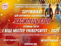 Студент третього курсу факультету інформатики, математики та економіки Василець Єгор взяв участь у загальноуніверситетському конкурсі краси, таланту та натхнення “МІСТЕР ТА МІС УНІВЕРСИТЕТ 2025” та отримав титул I Віце містер...