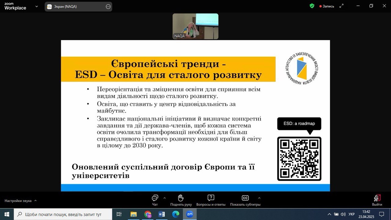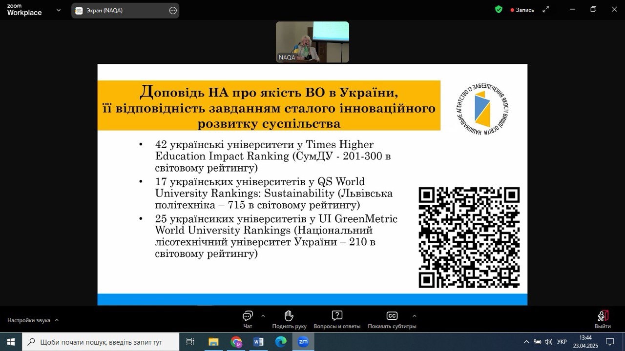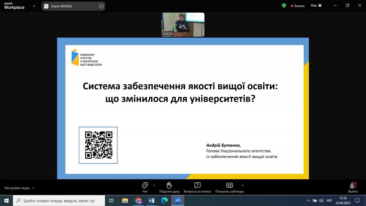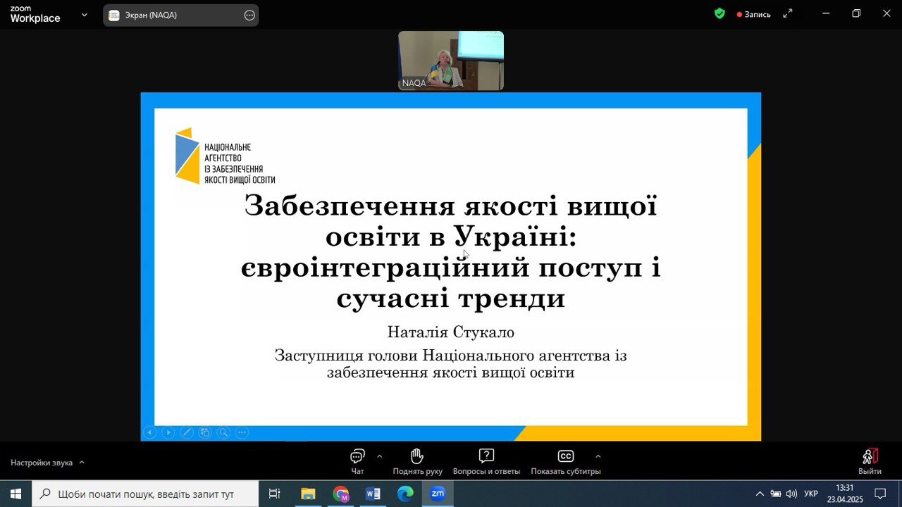 23 квітня 2025 року НПП кафедри економіки, готельно-ресторанного та туристичного бізнесу взяли участь у Всеукраїнському фаховому семінарі з питань забезпечення якості вищої освіти в галузі економіки та менеджменту, організованому Національним агентством із забезпечення якості вищої освіти. Захід відбувся на базі Київського національного економічного університету імені Вадима Гетьмана у змішаному форматі та об’єднав понад 400 учасників.