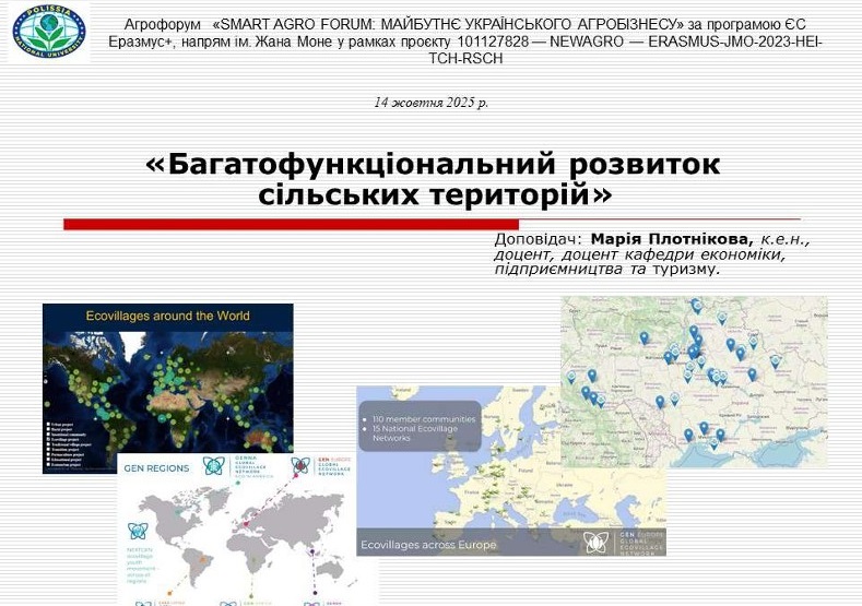14 жовтня 2025 року НПП кафедри економіки, готельно-ресторанного та туристичного бізнесу Мелітопольського державного педагогічного університету імені Богдана Хмельницького взяли участь у роботі Всеукраїнського агрофоруму SMART AGRO FORUM: «Майбутнє українського агробізнесу», який об’єднав понад 200 учасників – представників державних і місцевих органів влади, дорадчих служб, територіальних громад, аграрного бізнесу, освітян, науковців, студентів і усіх зацікавлених в питаннях відновлення сільських територій та сільського господарства з різних куточків України.