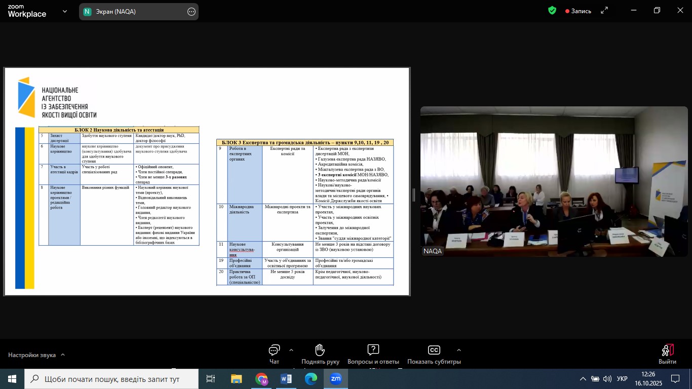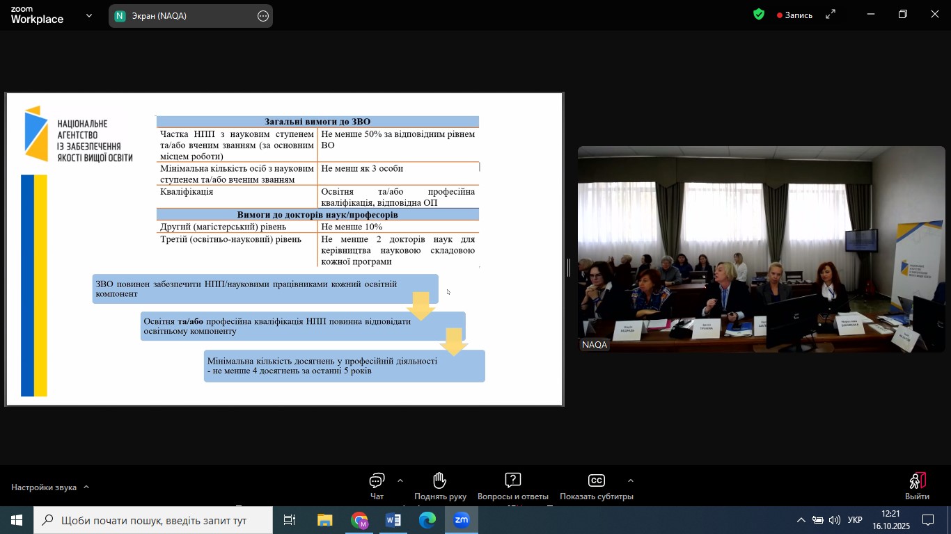З практичними кейсами та міркуваннями щодо акредитаційних процедур виступили голови ГЕР 05 Соціальні та поведінкові науки та ГЕР 07 Управління та адміністрування.