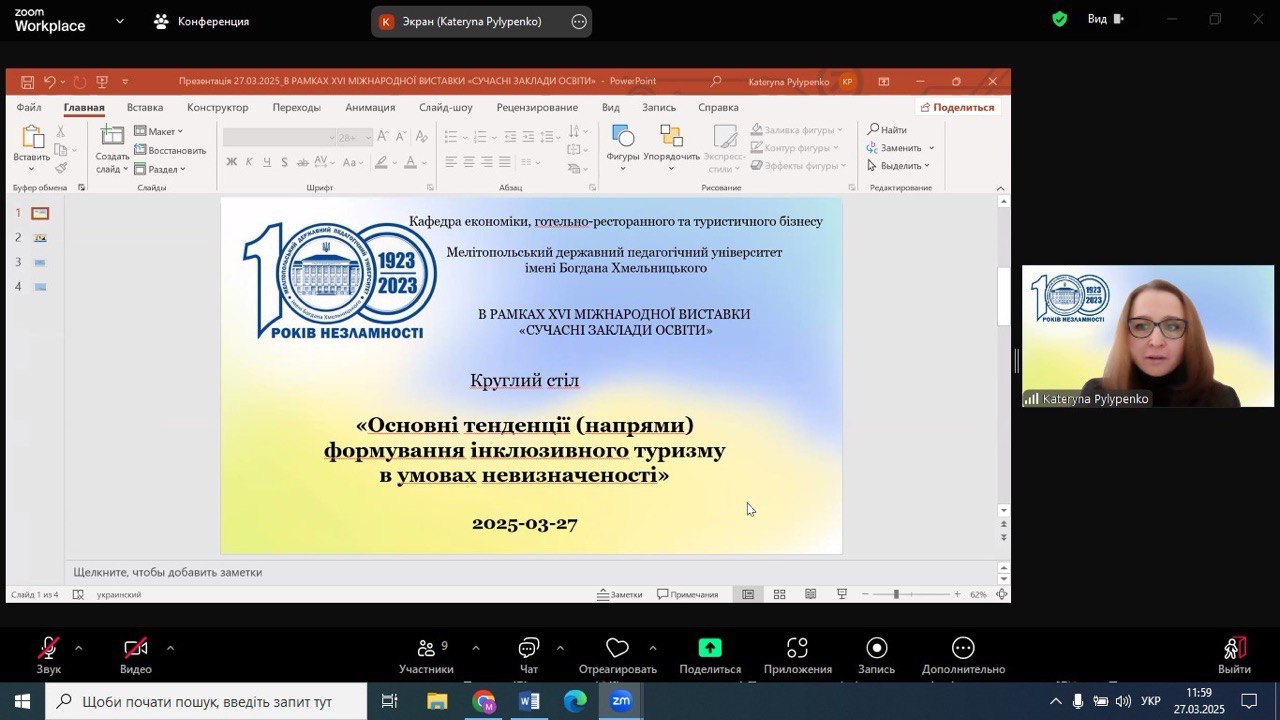 27.03.2025 року, в рамках XVI Міжнародної виставки «Сучасні заклади освіти», колективом кафедри економіки, готельно-ресторанного та туристичного бізнесу було організовано та проведено круглий стіл «Основні тенденції формування інклюзивного туризму в умовах невизначеності».