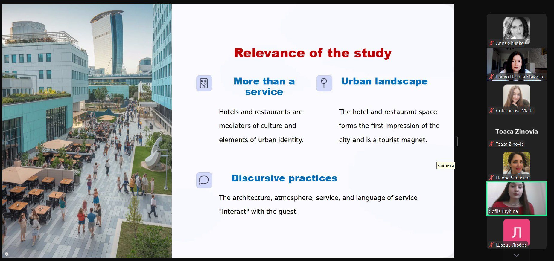 – Глебова Н.І. – доцент кафедри соціології Мелітопольського державного педагогічного університету імені Богдана Хмельницького з презентацією проєкту «Інтеркультурний фьюжн: модна кухня»