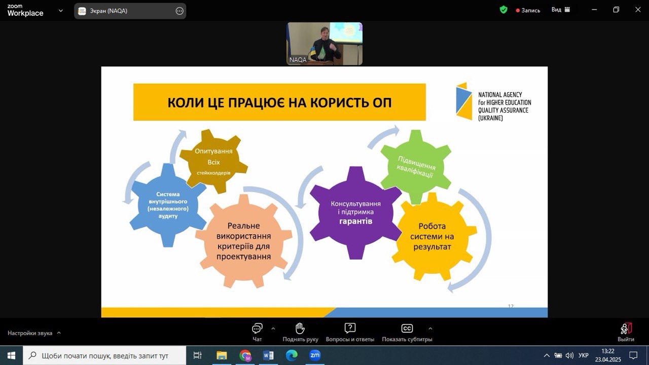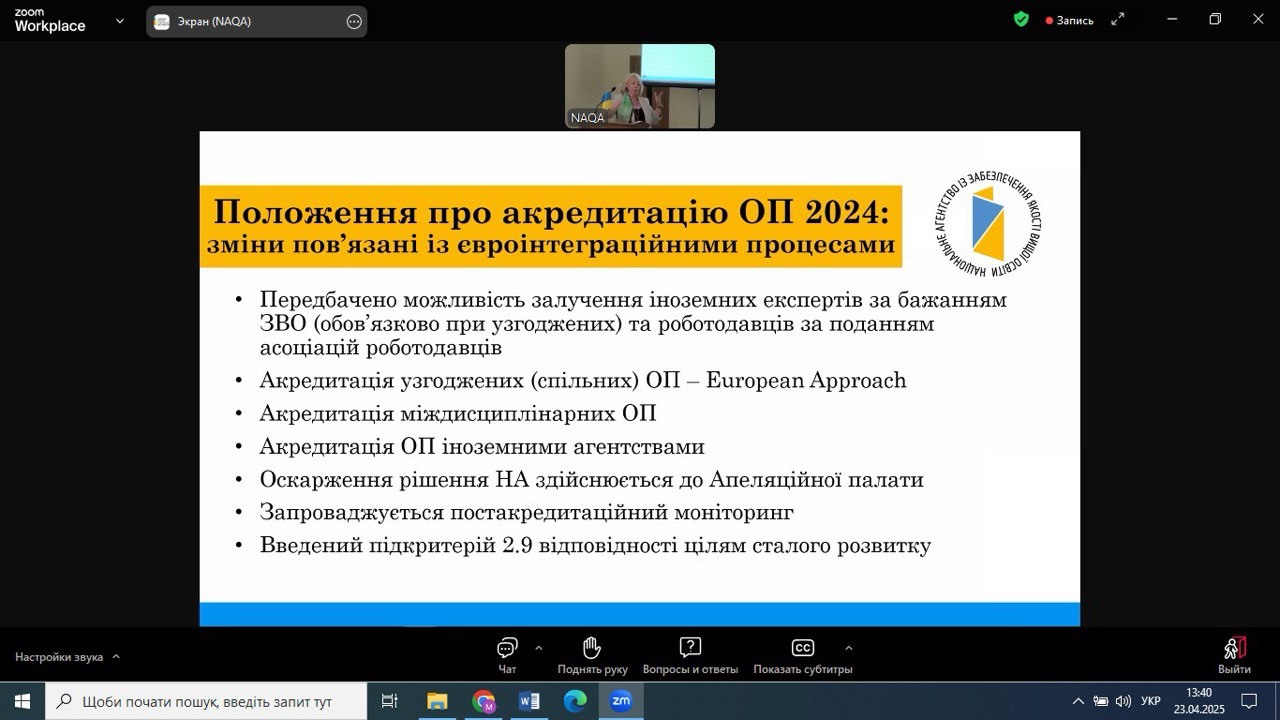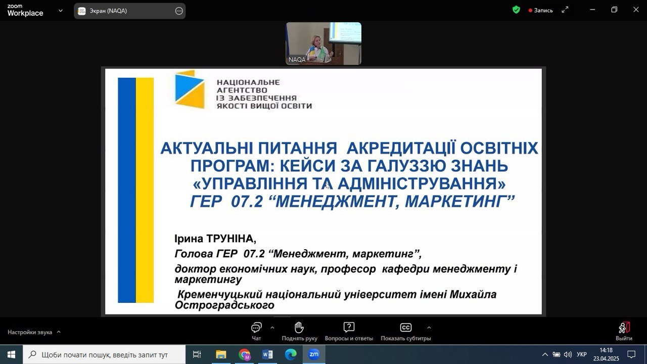 Доцентом кафедри Верховод І.С. проведено Zoom-конференцію «Чому і як здобувач вищої освіти може впливати на якість освітньої програми?»