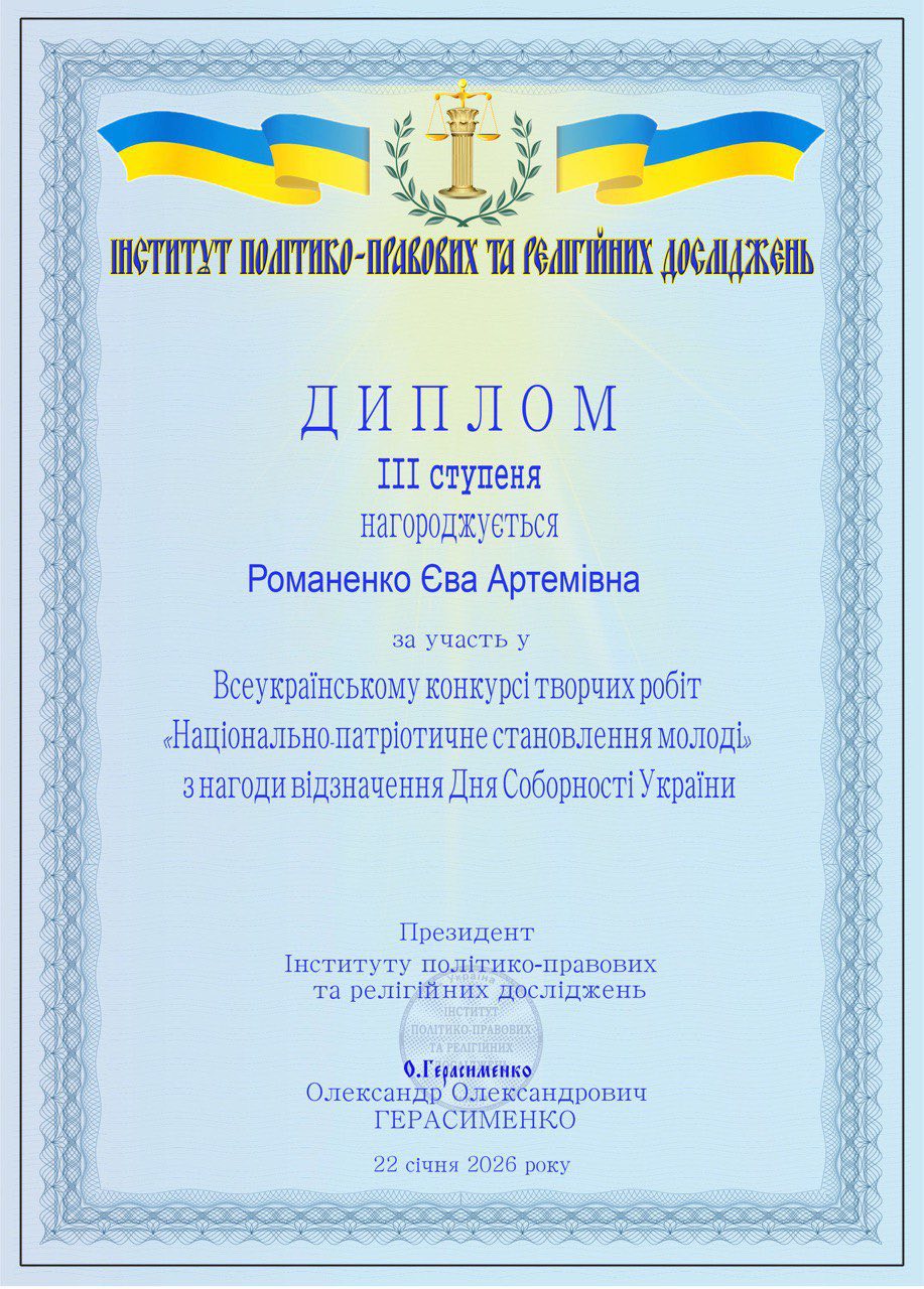 Вітаємо зі здобутим ІІІ місцем у конкурсі «Національно патріотичне становлення молоді»