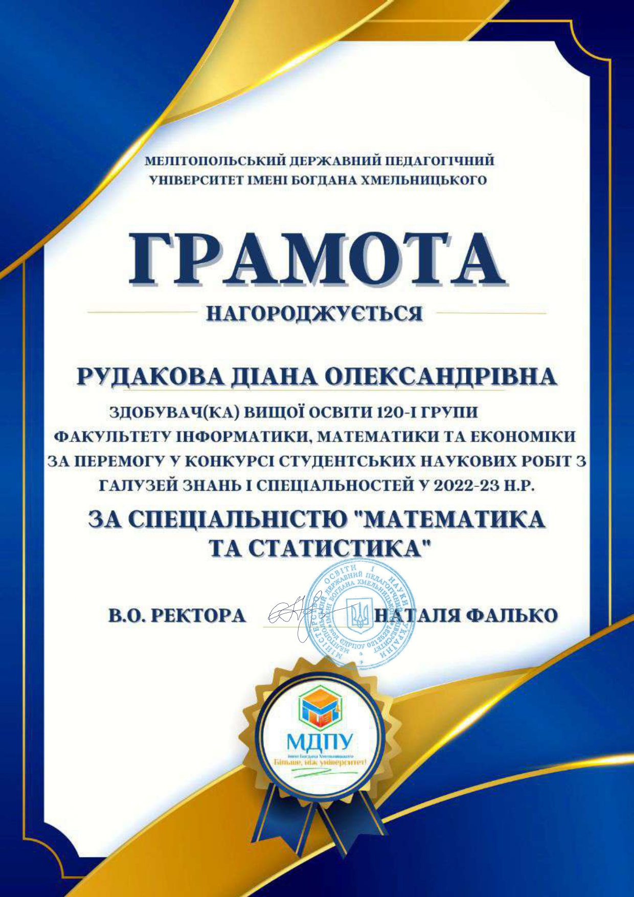 На кафедрі математики і фізики працює студентський науковий гурток «Радикал», який об’єднав здобувачів ВО з метою якісної підготовки фахівців, формування навичок наукової роботи та вмінь застосовувати їх в практичній діяльності. Гурток покликаний стимулювати творчий підхід до навчання та залучати найбільш обдарованих студентів до подальшої наукової діяльності. Основною метою гуртка «Радикал» є залучення студентів до наукової роботи і вдосконалення навичок у самостійній науково-дослідній діяльності. У березні 2024 р. команда Aleph zero студентів факультету інформатики, математики та економіки МДПУ, які також є учасниками гуртка «Радикал», здобула перемогу (I місце) в номінації «Найкраща спільна робота» у міжнародній олімпіаді з математики SoMaS Team Challenge 2024 (на базі Школи математики та статистики Університету Шеффілда, Сполучене Королівство Великої Британії та Північної Ірландії). (посилання)