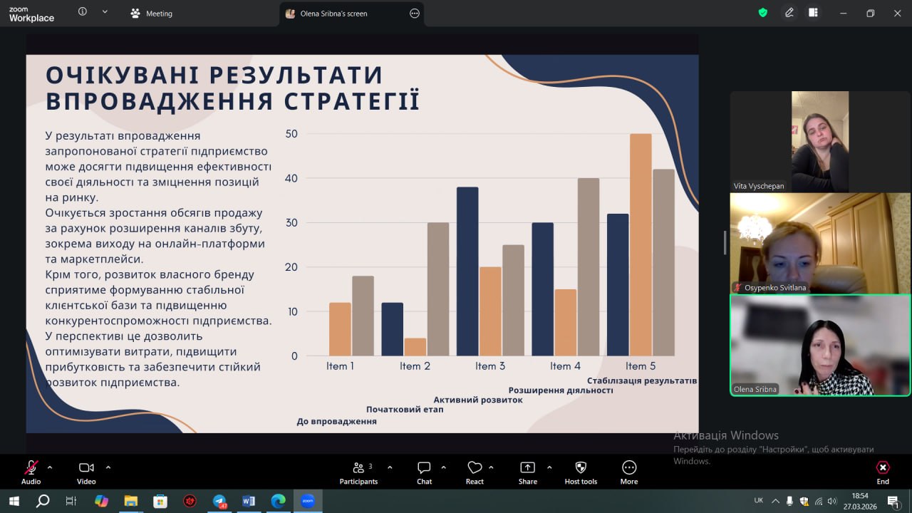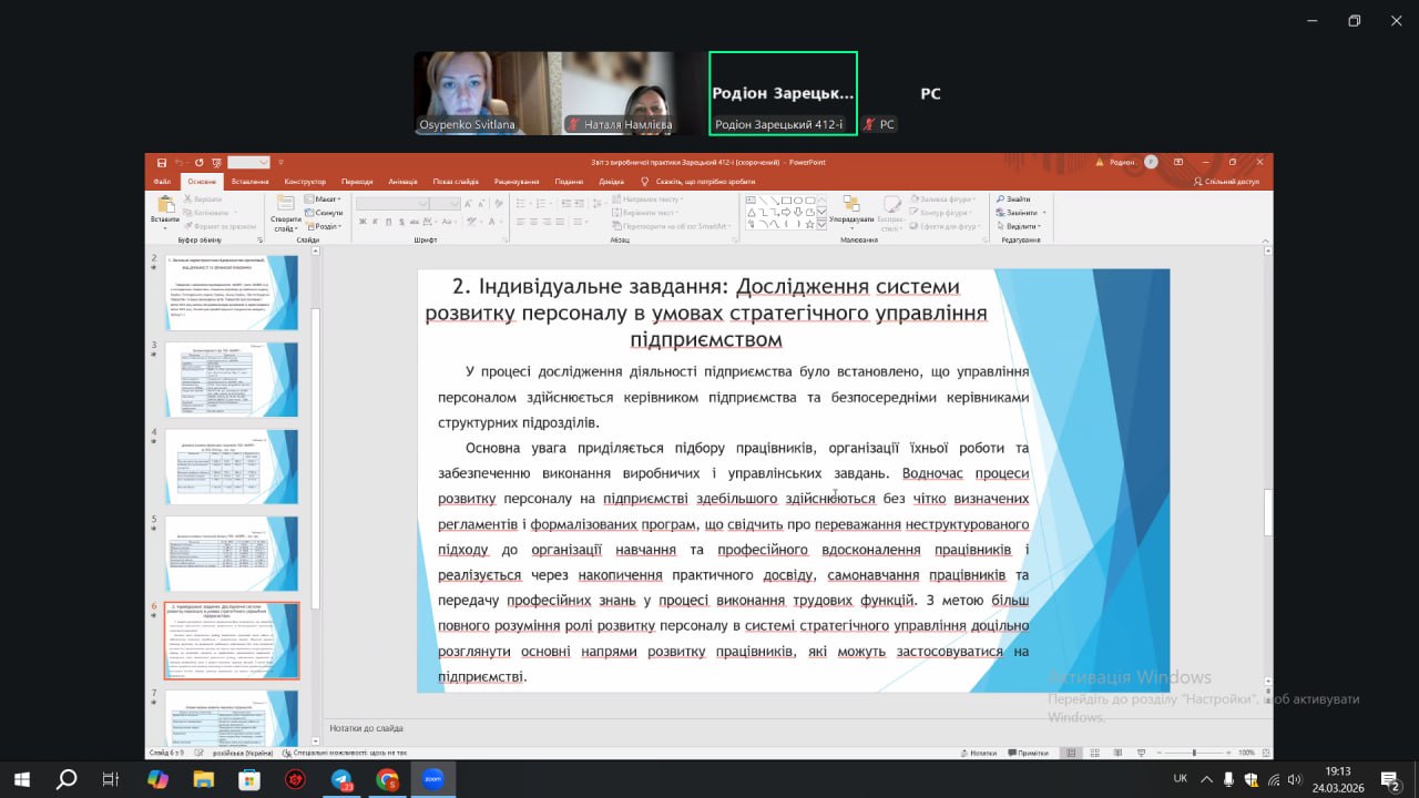 Під керівництвом кандидата економічних наук, доцента Осипенко Світлани Олександрівни, здобувачі представили результати практики, яку вони проходили на базі провідних підприємств і установ.