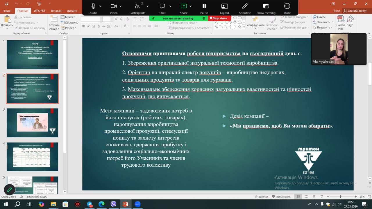 Під час захисту звітів здобувачі вищої освіти представили результати своєї практичної діяльності, отримані у процесі проходження практики на базі провідних підприємств. У своїх виступах вони висвітлили досвід використання сучасних інструментів управління, здійснили аналіз практичних ситуацій у сфері менеджменту та окреслили шляхи підвищення ефективності ряду бізнес-процесів.