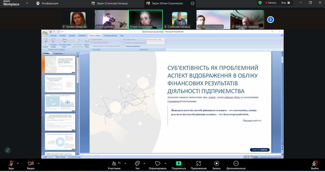Під час заходу було обговорено коло актуальних питань, пов’язаних із соціально-економічним розвитком світового господарства в умовах глобалізації, модернізацією фінансової системи України, удосконаленням обліково-аналітичних процесів, розвитком трудового потенціалу, застосуванням інноваційних та маркетингових технологій, а також управлінням економічним розвитком регіонів і держави як складової національної безпеки.