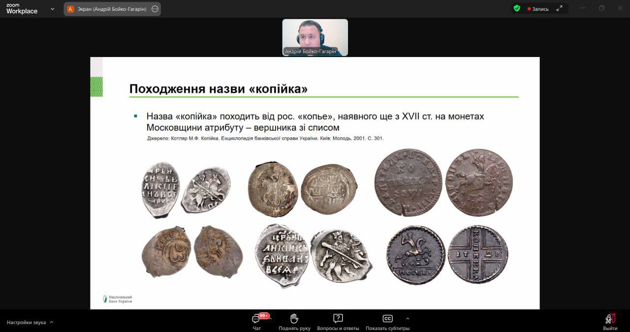 Вебінар провів доктор історичних наук, старший зберігач фондів Музею грошей – Андрій Бойко-Гагарін.