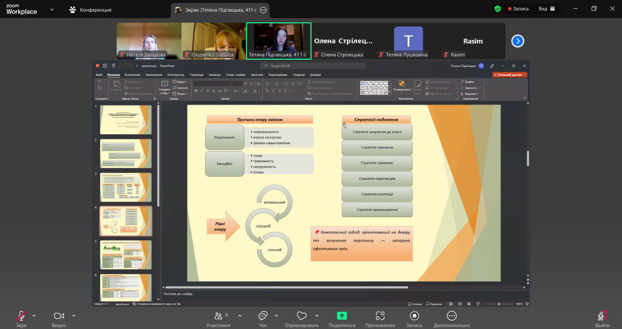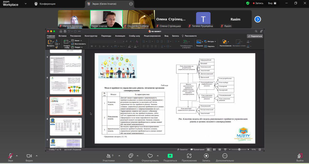 Триває захист звітів за результатами проходження виробничої практики магістрів освітніх програм “Управління навчальними закладами” та “Менеджмент підприємств та організацій”.